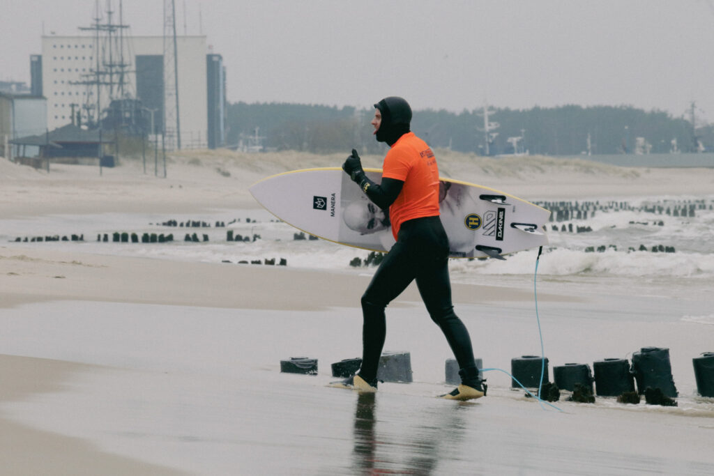 Dzięki! Tak i nie — jestem przyzwyczajony do zimna. Przez około osiem miesięcy w roku surfuję w butach i kapturze. Ale Polska jest zdecydowanie zimniejsza niż jakiekolwiek inne miejsce, w którym surfowałem. Poza tym woda nie jest słona, co sprawia, że warunki są zupełnie inne i trudniejsze.