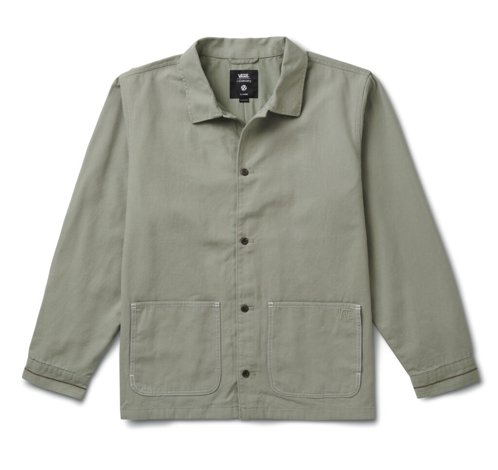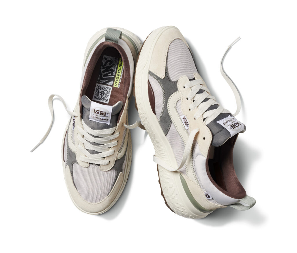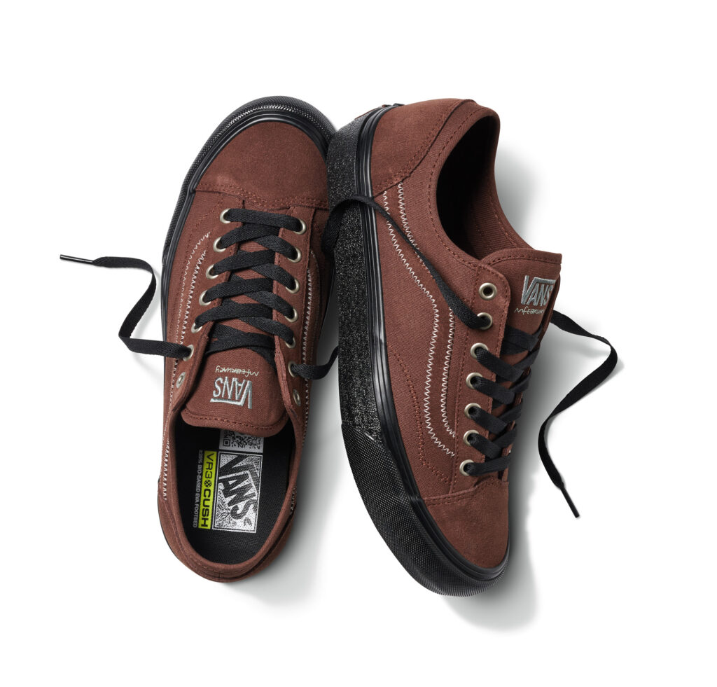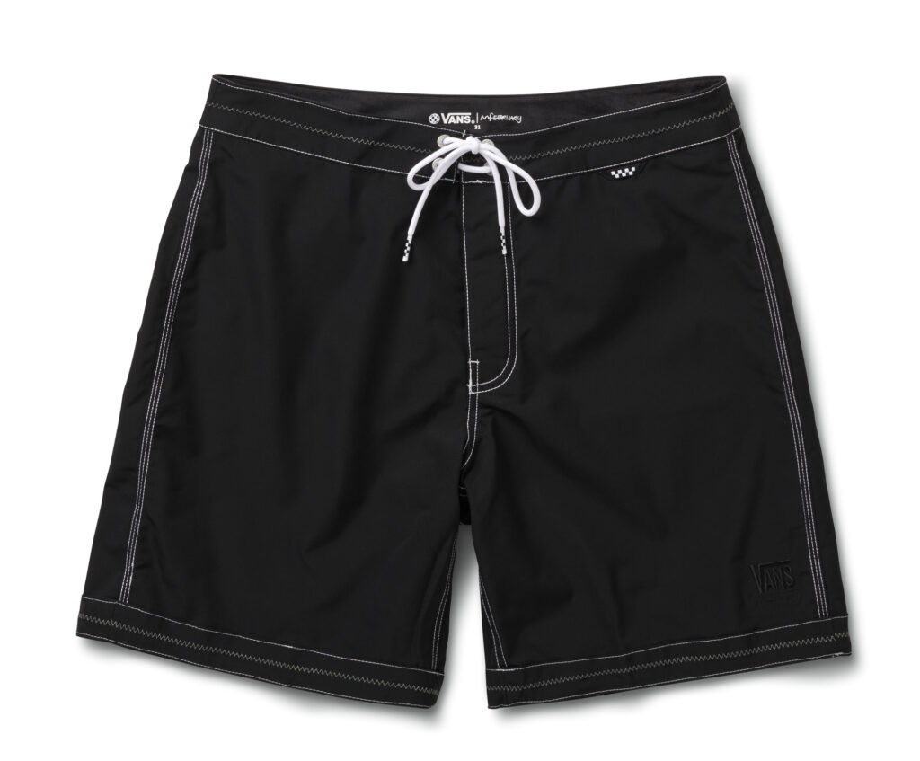 Besides the Ultrarange Neo VR3, the collection also consists of the Surf Boot 2 Hi V, Style 36 Decon VR3 SF in rich brown and glossy black, and an Authentic VR3 with a kick-down heel (for ease of entry and egress) in „Shadow.” Each VR3 sneaker features materials like regenerative leather and bio-based foam. This is a step towards Vans’ goal of sourcing 100% of its top 4 CO2 impact materials (cotton, leather, rubber, and polyester) from regenerative, responsibly sourced, renewable, and/or recycled sources by 2030. Besides footwear, the Vans Surf x Mikey February collection also offers the Ever-Ride Boardshort, SS Woven Shirt, Chore Jacket, SS Tee, Authentic Pant, and Tote Bag.