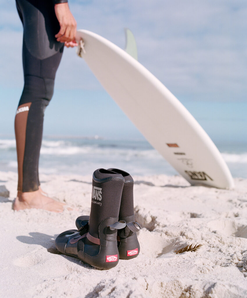 Vans Surf team rider Mikey February leads a life of purpose and intention, both on and off his board. The intention and determination that February displays riding a wave is the same intention and determination he applies to life off the board, a mindset that’s helped him to become one of the world’s most accomplished surfers — all while remaining the same affable, accessible individual he’s always been, a hometown hero who founded his non-profit organization with his wife Zelti and was the first Black African surfer to qualify for the WSL Championship Tour. Now, February’s unique cocktail of intention, determination, openness, and love of community has been put on display across his new collection of apparel and footwear with Vans Surf.