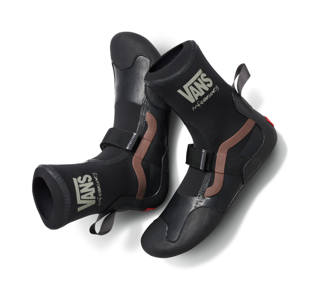 Oprócz Ultrarange Neo VR3, kolekcja składa się również z Surf Boot 2 Hi V, Style 36 Decon VR3 SF w eleganckim brązie i błyszczącej czerni oraz Authentic VR3 z piętą typu kick-down (ułatwiającą wkładanie i zdejmowanie) w kolorze „Shadow”. Każdy trampek VR3 jest wykonany z materiałów takich jak skóra regenerowana i pianka na bazie biologicznej. Jest to krok marki Vans na pozyskiwanie 4 swoich głównych materiałów o największym wpływie na emisję CO2 (bawełna, skóra, guma i poliester) w 100% ze źródeł: regenerowanych, odpowiedzialnie pozyskiwanych, odnawialnych i/lub pochodzących z recyklingu do 2030 roku. Oprócz obuwia, kolekcja Vans Surf x Mikey February oferuje również spodenki Ever-Ride Boardshort, koszulkę SS Woven Shirt, kurtkę Chore Jacket, koszulkę SS Tee, spodnie Authentic Pant i torbę Tote Bag.